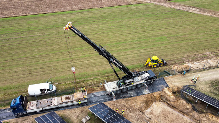Při výstavbě fotovoltaické elektrárny je jedním z klíčových úkolů zajištění vhodné dopravní cesty pro jeřáb, který je potřebný pro přepravu trafostanice. Silnice musí být dostatečně únosná a pevná, aby odolala zvýšenému zatížení těžké techniky, ale zároveň aby se jednoduše a rychle nainstalovala.